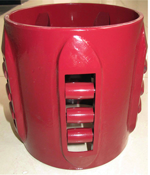 安裝時(shí)將扶正器園箍上的銷(xiāo)孔開(kāi)口向上,扣在套管上,合箍后穿進(jìn)上下兩個(gè)銷(xiāo)子,將鎖銷(xiāo)片砸扁,防止銷(xiāo)子退出,檢查無(wú)誤后入井內(nèi)。